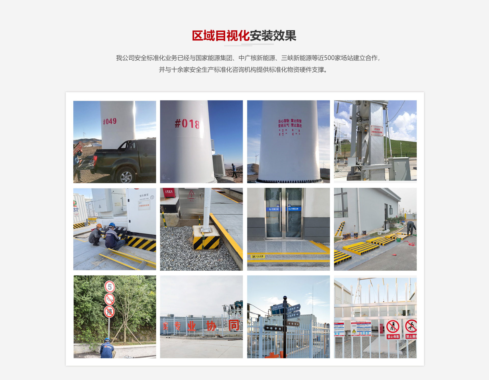 我公司安全標(biāo)準(zhǔn)化業(yè)務(wù)已經(jīng)與國家能源集團(tuán)、中廣核新能源、三峽新能源等近500家場(chǎng)站建立合作,并與十余家安全生產(chǎn)標(biāo)準(zhǔn)化咨詢機(jī)構(gòu)提供標(biāo)準(zhǔn)化物資硬件支撐。