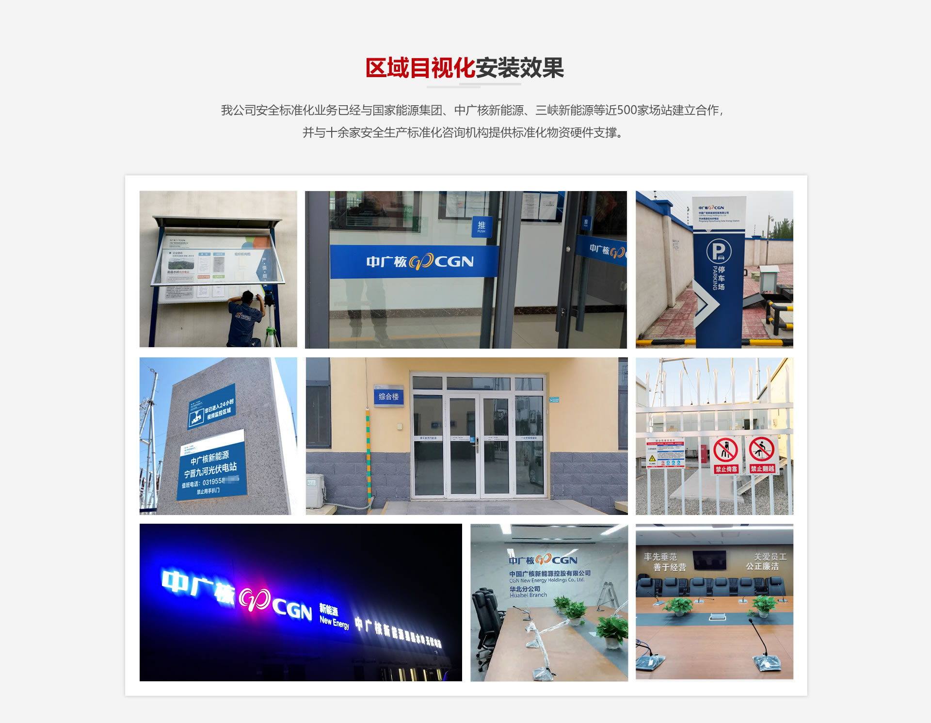 我公司安全標(biāo)準(zhǔn)化業(yè)務(wù)已經(jīng)與國家能源集團(tuán)、中廣核新能源、三峽新能源等近500家場站建立合作,并與十余家安全生產(chǎn)標(biāo)準(zhǔn)化咨詢機(jī)構(gòu)提供標(biāo)準(zhǔn)化物資硬件支撐。